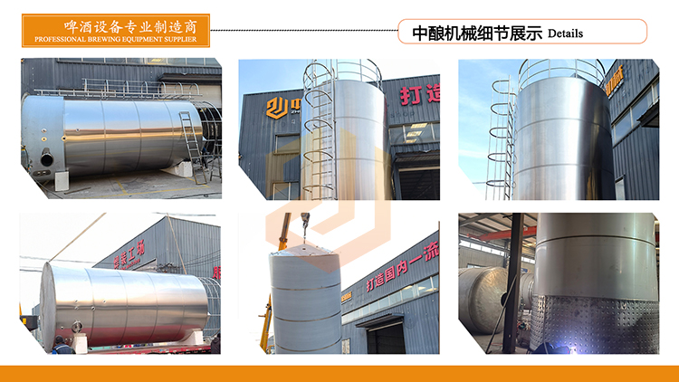 濟南中釀生產(chǎn)的10到50噸啤酒廠清酒罐,適用于各型大型啤酒廠適用,有效容積為10到50噸,每套設(shè)備配備有若干個此類罐體,罐體可實現(xiàn)保溫帶冷卻的,可以輕松實現(xiàn)釀制6到10種精釀啤酒的目的,本公司可以生產(chǎn)各型我們可以加工不同型號的啤酒廠設(shè)備啤酒發(fā)酵罐,10噸到50噸大型啤酒廠冰水罐,和各型清酒罐儲酒罐等罐體,歡迎您前來咨詢購買。